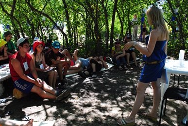 | Первым гостем в лагере стала психолог, кандидат психологических наук Нестерова Е.А., которая провела для участников тренинг «Навыки эффективного общения», ребята в игровой форме нарабатывали коммуникативные навыки, учились свободно общаться с незнакомыми людьми, находили возможности выполнять задание совместно с ребятами, которых видели впервые. | |