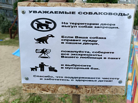 А ещё управляющая организация заботится о поддержании порядка на вверенных территориях и поэтому начала установку табличек с правилами выгула собак.