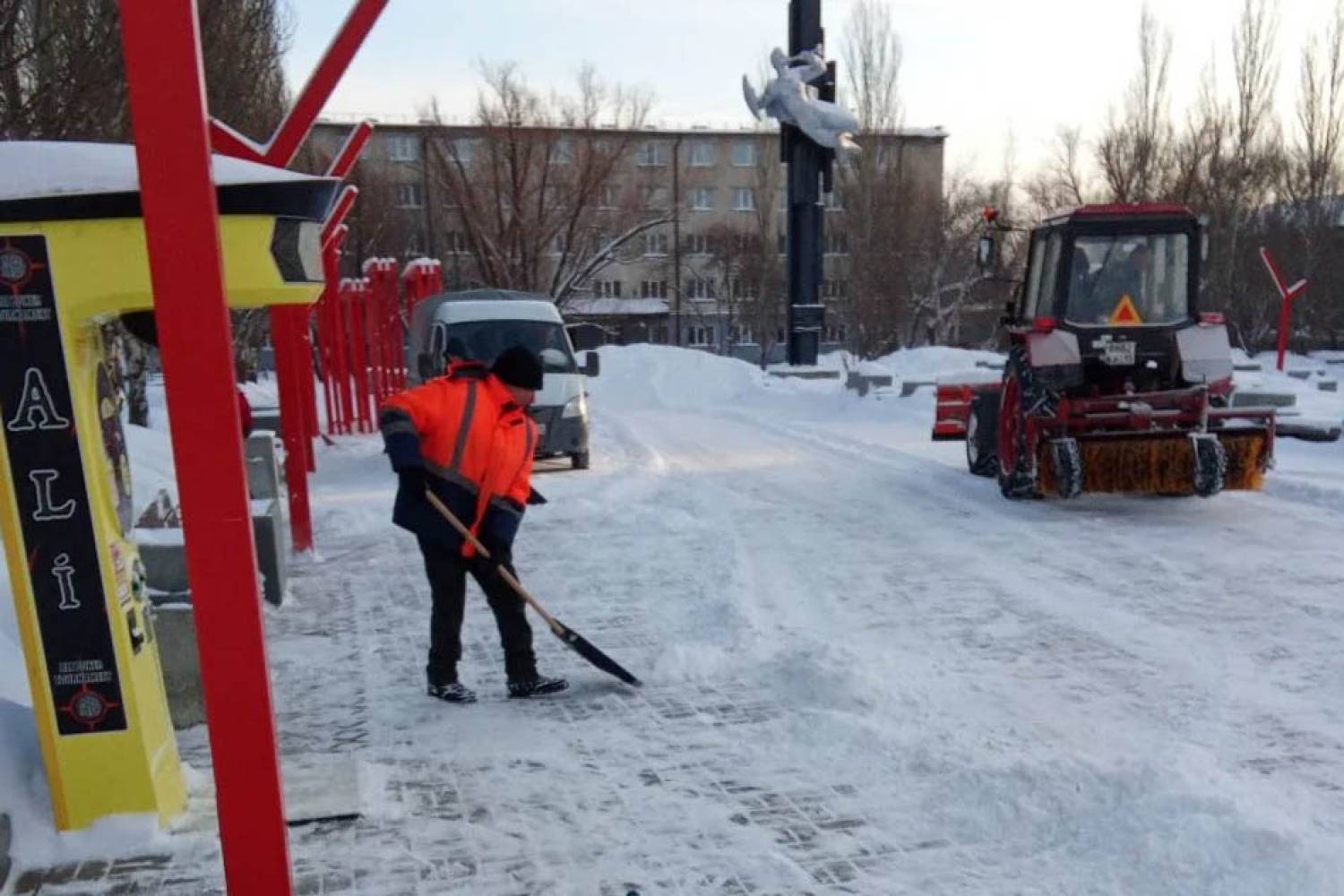 Уборка и вывоз снега осуществляется на территориях учреждений социальной сферы. Сегодня эти задачи с помощью техники выполняют порядка 250 рабочих.