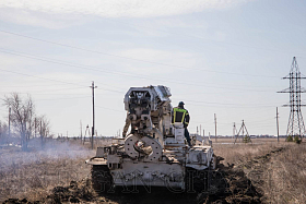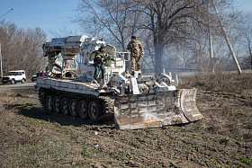 - Основное преимущество данной машины — это её ходовая база, основанная на базе танка Т-72, что позволяет ей проводить работы в труднодоступных участках местности. В случае возникновения какой-либо угрозы и ландшафтного пожара данная машина может быть оперативно переброшена на этот опасный участок для создания минерализованных полос, - пояснил Александр Витальевич.