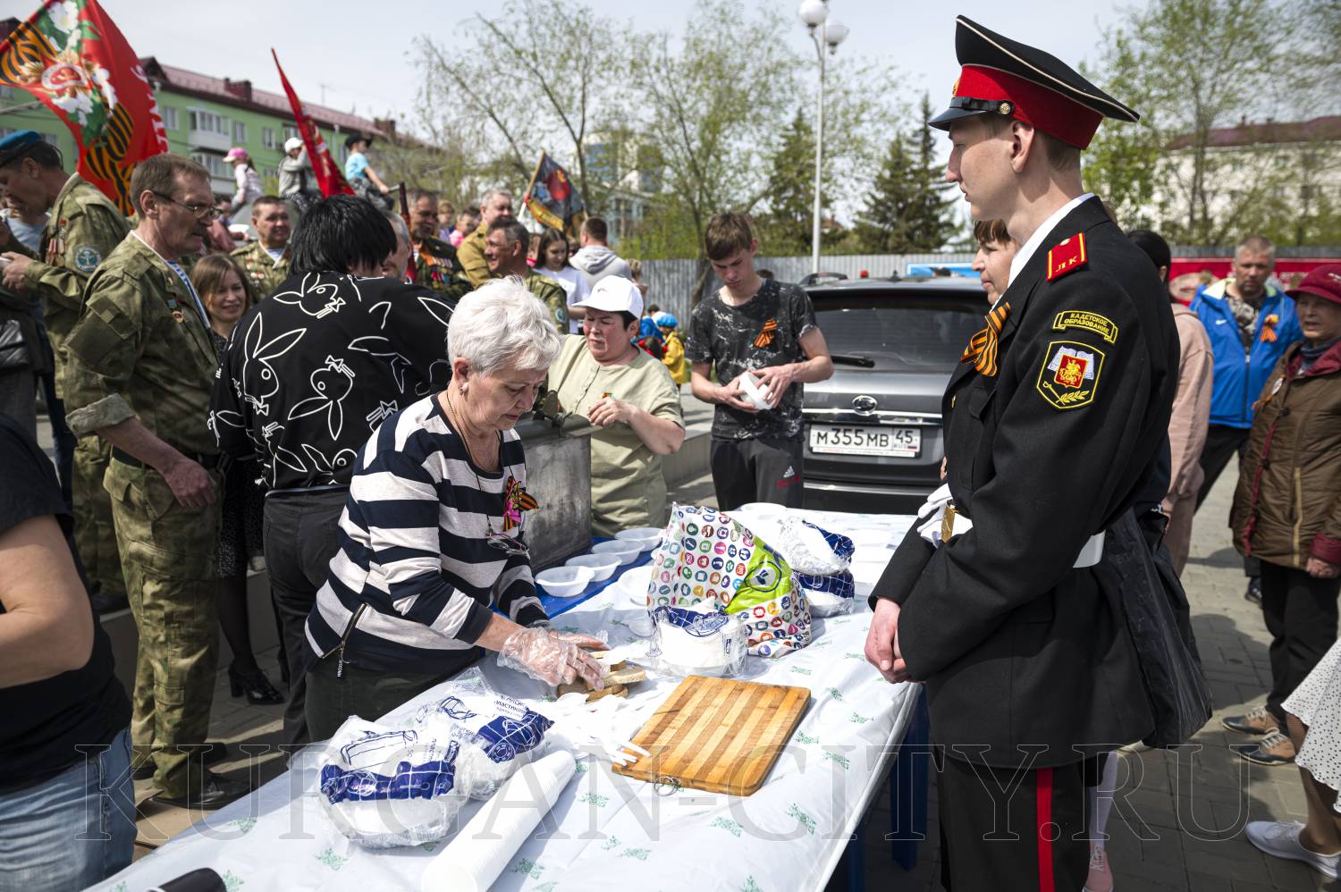 Полевая кухня развернулась на площадке возле кинотеатра «Россия», Мемориального ансамбля воинам-рабочим и труженикам тыла завода «Кургансельмаш». Также попробовать фронтовой каши можно было на площадке у Мемориального комплекса воинам-зауральцам, погибшим в локальных войнах и вооруженных конфликтах второй половины ХХ века, а также на площадке Курганского Дома молодёжи около военно-патриотического центра «Звезда». Там, где работала полевая кухня, проходили праздничные концерты.