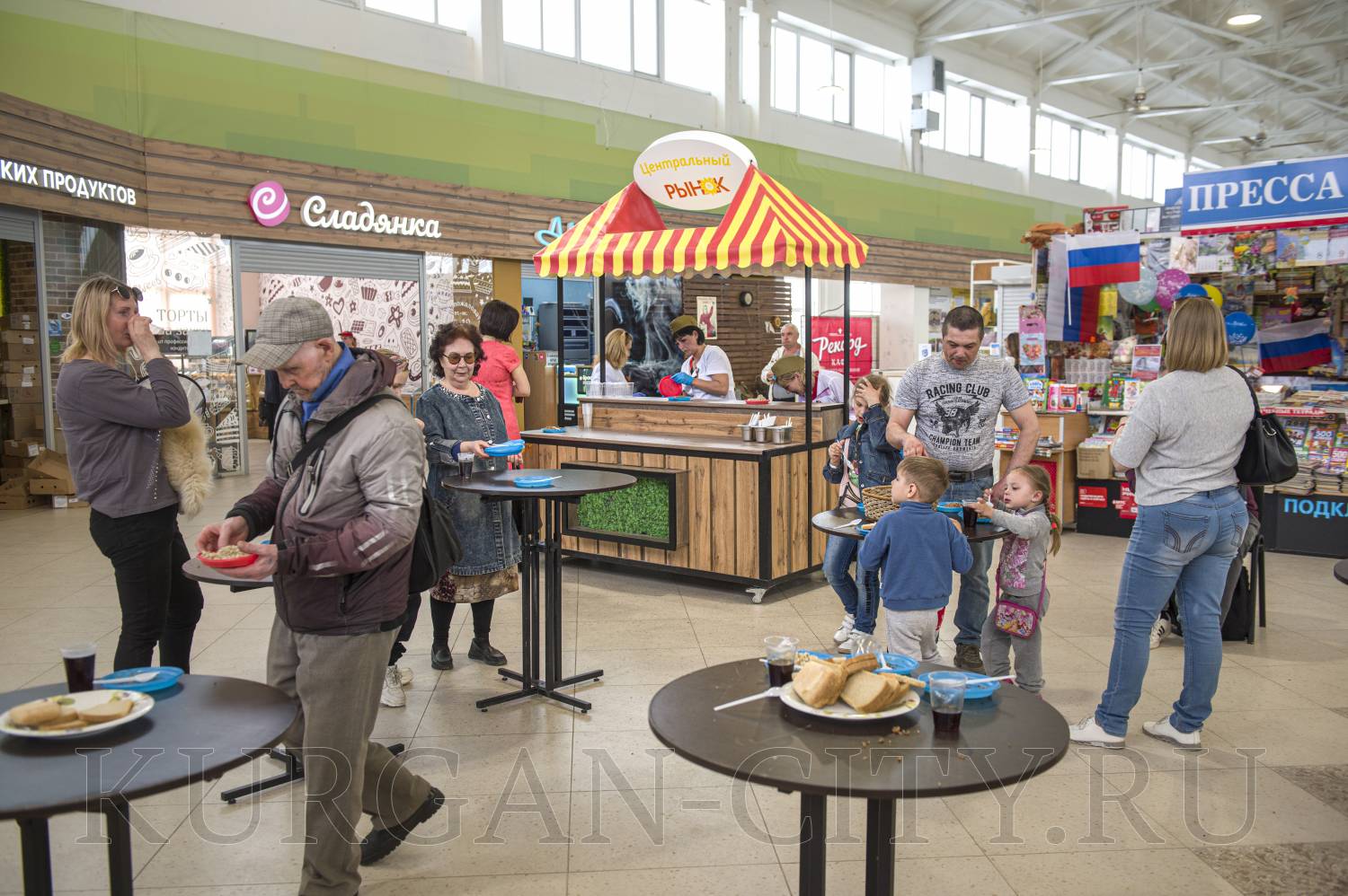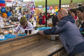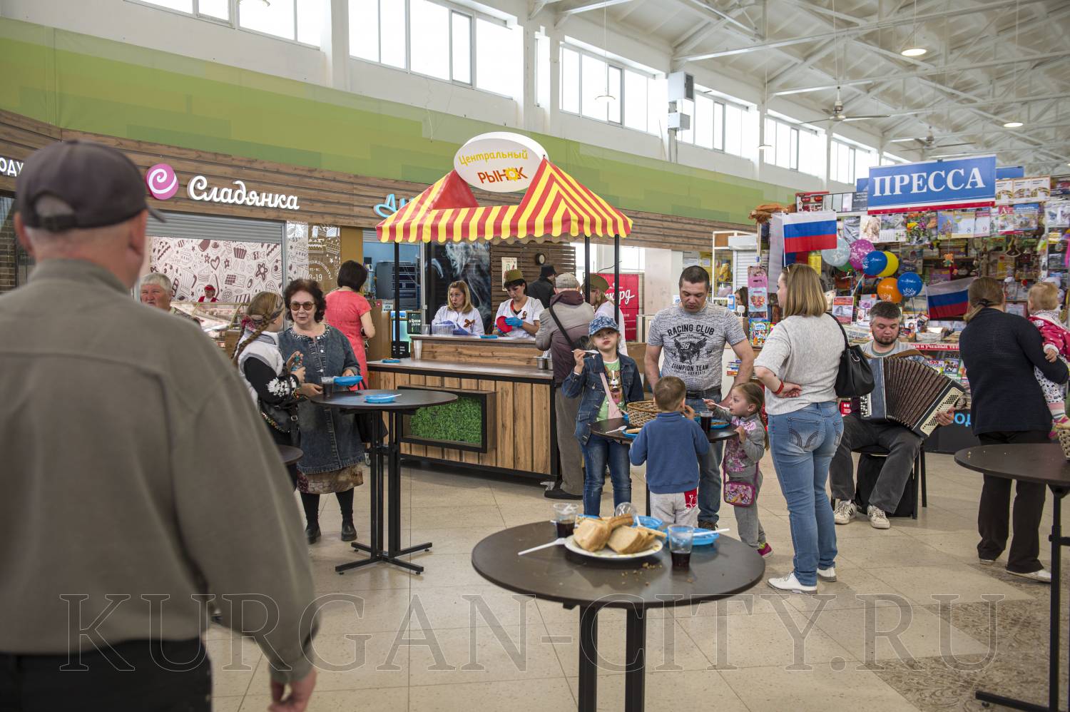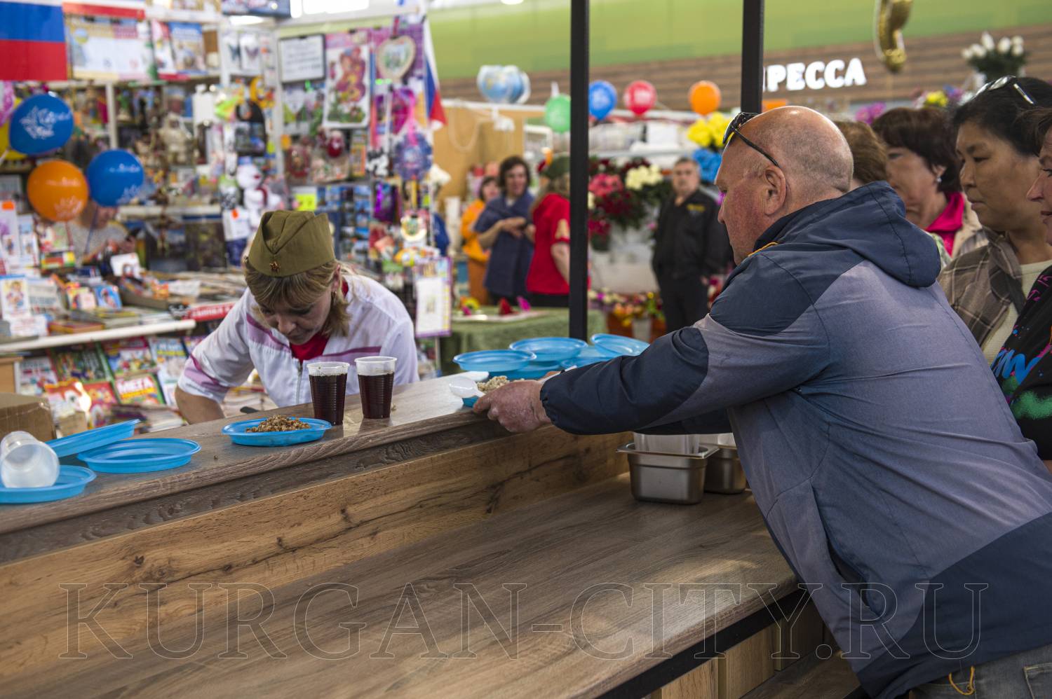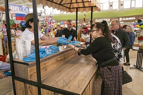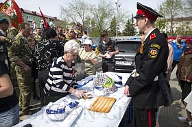 Второй год подряд полевую кухню организовывают и на Центральном рынке. Сегодня всех гостей там угощали двумя видами каши – гречневой и перловой, а также чаем. Здесь звучали живая музыка и песни военных лет.