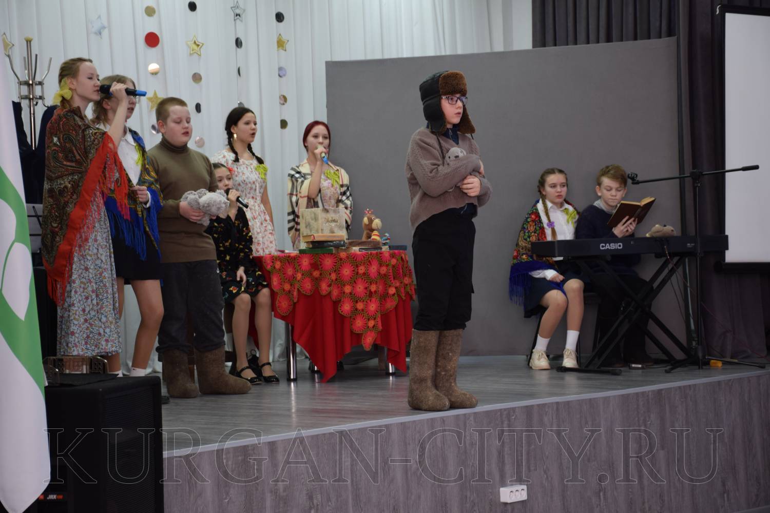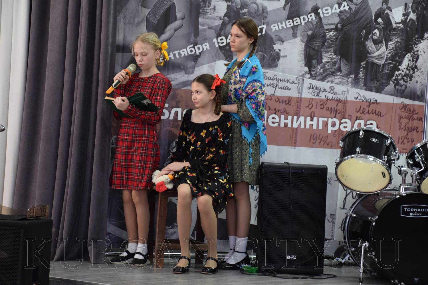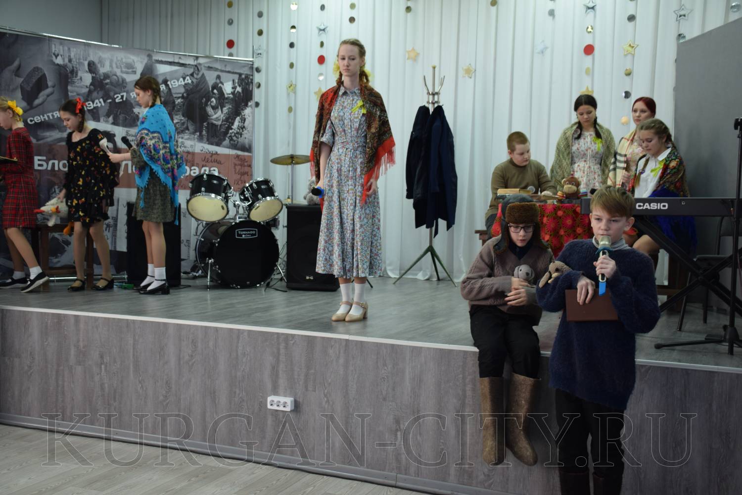 На сцене выступили школьники со стихами и театрализованными постановками. Сегодняшние школьники очень эмоционально и глубоко прочувствовали тему блокады, оттого в зале стояла тишина, и сидящие ученики с огромным интересом слушали своих одноклассников, рассказывающих о тяготах блокадного города.