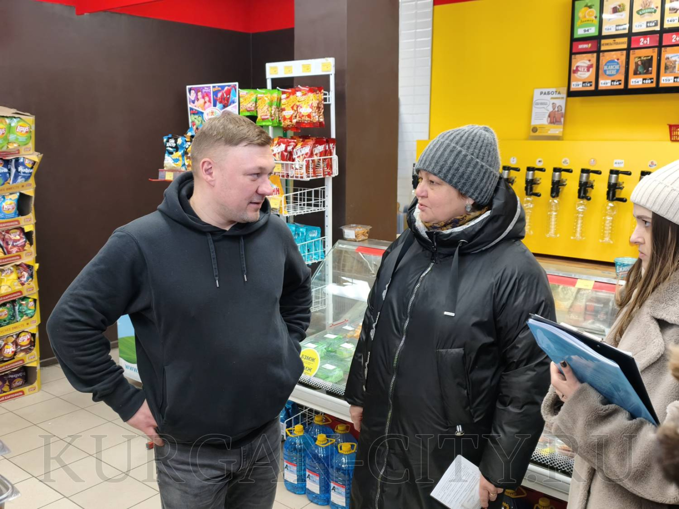 Сотрудники рабочей группы выехали в микрорайон Рябково. Были проверены продуктовый магазин, магазин разливных напитков, пункт выдачи одного из маркетплейсов, шиномонтажная мастерская.
