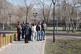 Объезд начался с посещения Городского сада. Основное внимание было уделено уборке и содержанию любимого курганцами места отдыха. По итогам осмотра даны поручения по проведению текущих ремонтов фонтана, дорожек и прорезиненного покрытия. Также Дирекции парков и скверов было поручено проработать вопрос увеличения игрового оборудования на площадках для детей.