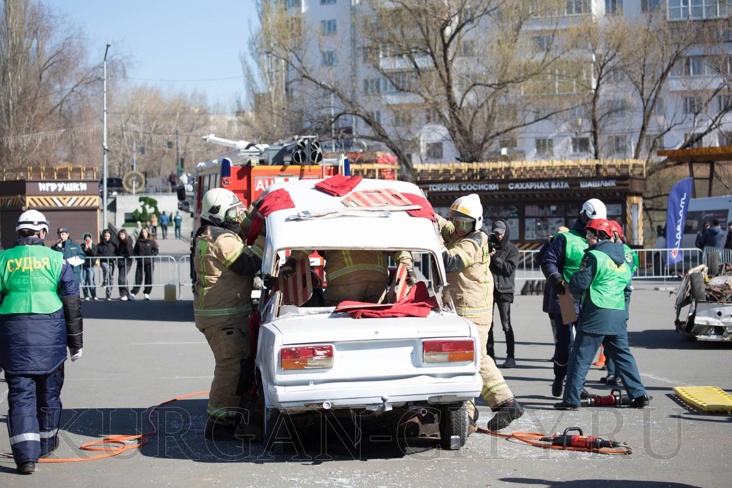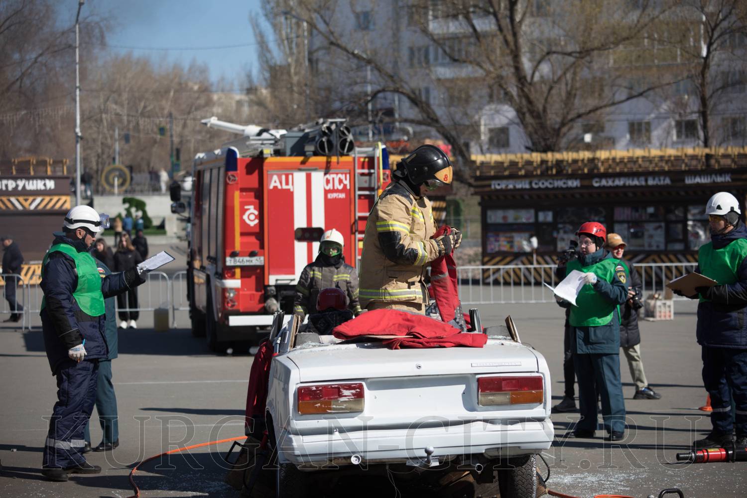 В Центральном парке культуры и отдыха Кургана сегодня прошел второй этап соревнований на звание «Лучшая команда МЧС России по проведению аварийно-спасательных работ при ликвидации последствий аварий на автомобильном транспорте» в 2026 году. На него собрались команды Главного управления МСЧ России по Курганской, Свердловской, Тюменской, Челябинской областям, Ханты-Мансийскому автономному округу – Югре и Ямало-Ненецкому автономному округу. С приветственными словами к командам обратился глава города Кургана Антон Науменко.