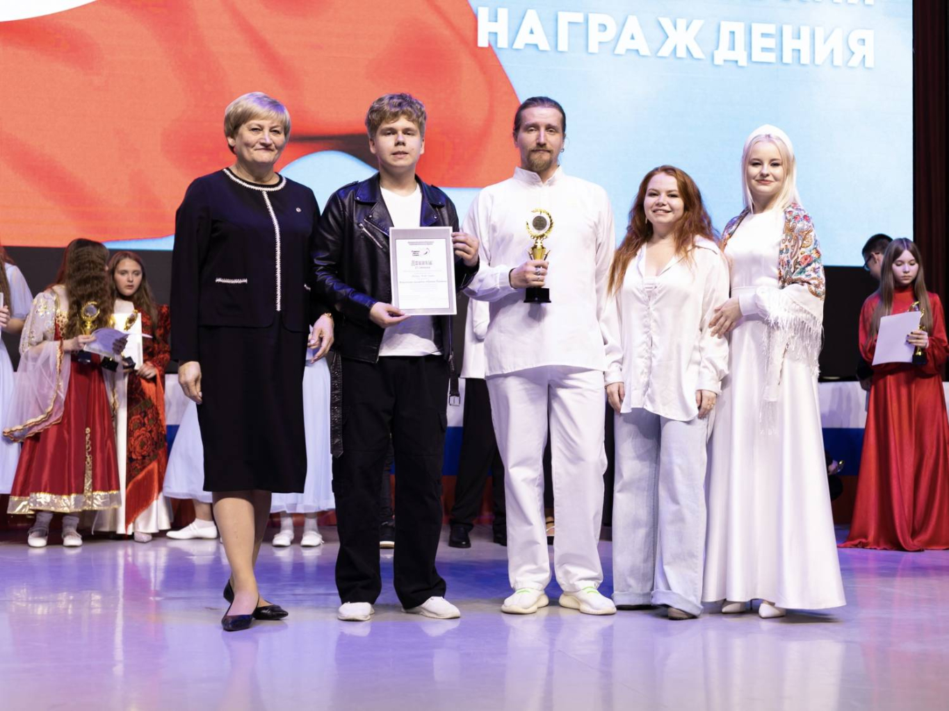 Награждение в номинации «Вокальная группа, ансамбль» провела депутат Курганской городской Думы Татьяна Федорова. Она поблагодарила всех, кто принял участие в фестивале, вложив душу, назвала выступления исполнителей примером истинной преданности своему творчеству и своей стране. Татьян Петровна поздравила победителей фестиваля и пожелала артистам, чтобы их талант продолжал и дальше восхищать зрителей.