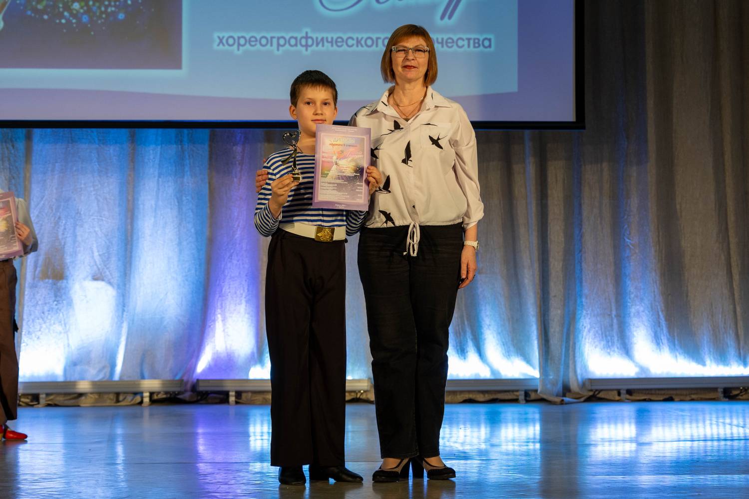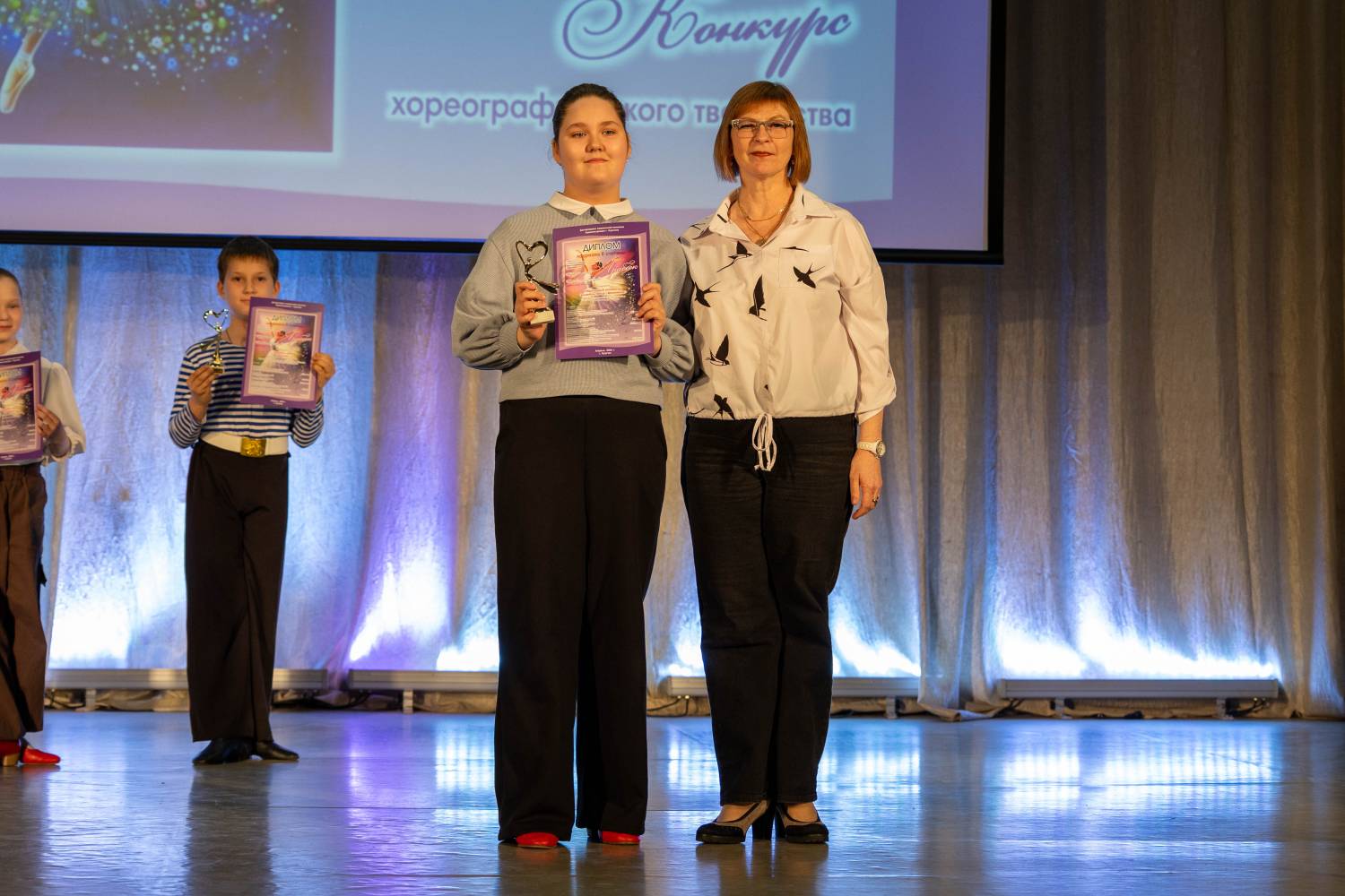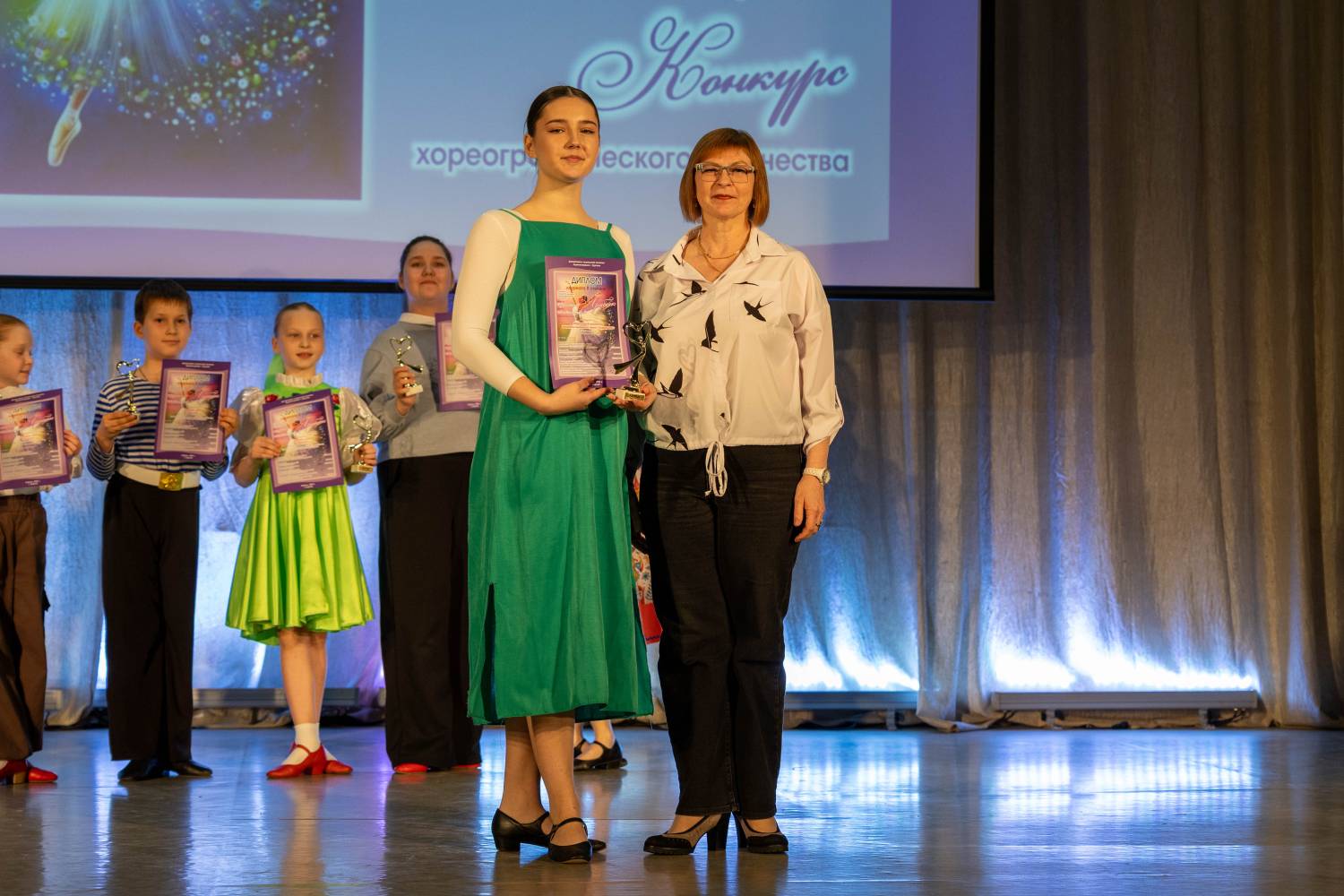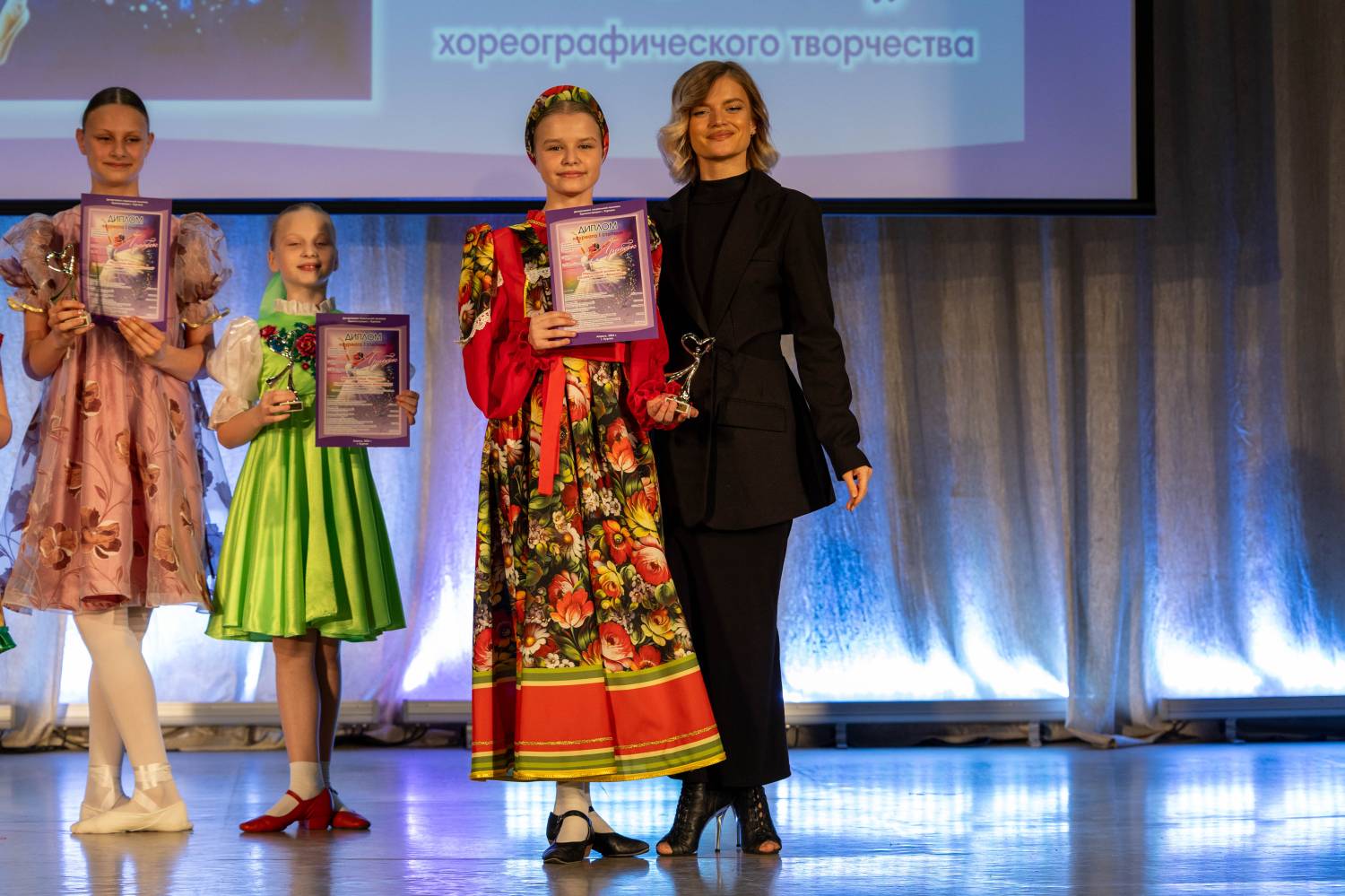 В номинации «Детский танец» победителями признаны хореографический коллектив «Искорки» и ансамбль танца «Жар-птица» ДШИ им. В.А. Громова. Дарья Менщикова, солистка Образцового коллектив ансамбля танца «Веселинка» из этой же Детской школы искусств стала лауреатом 1-й степени в номинации «Классический танец».