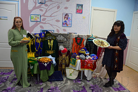 Коллектив учреждения встречал конкурсантов в русских народных костюмах. Утро началось с праздничного концерта, посвященного Году единства народов России, в котором выступил детский ансамбль «Наследие», а воспитанники детского сада №131 подготовили русский народный танец «Березка». В фойе учреждения разместили фотозоны, посвященные культуре и быту русского народа. Здесь стояла импровизированная печь, посуда с росписью хохломских мастеров. Все желающие могли отведать каравай. Также были подготовлены фотозоны, представляющие культуру и быт казахского и татарского народов. Здесь можно было примерить национальную одежду, украшения, головные уборы, отведать бешбармак и выпечку - баурсаки и чак-чак. Каждый конкурсант получил в подарок на удачу подкову.