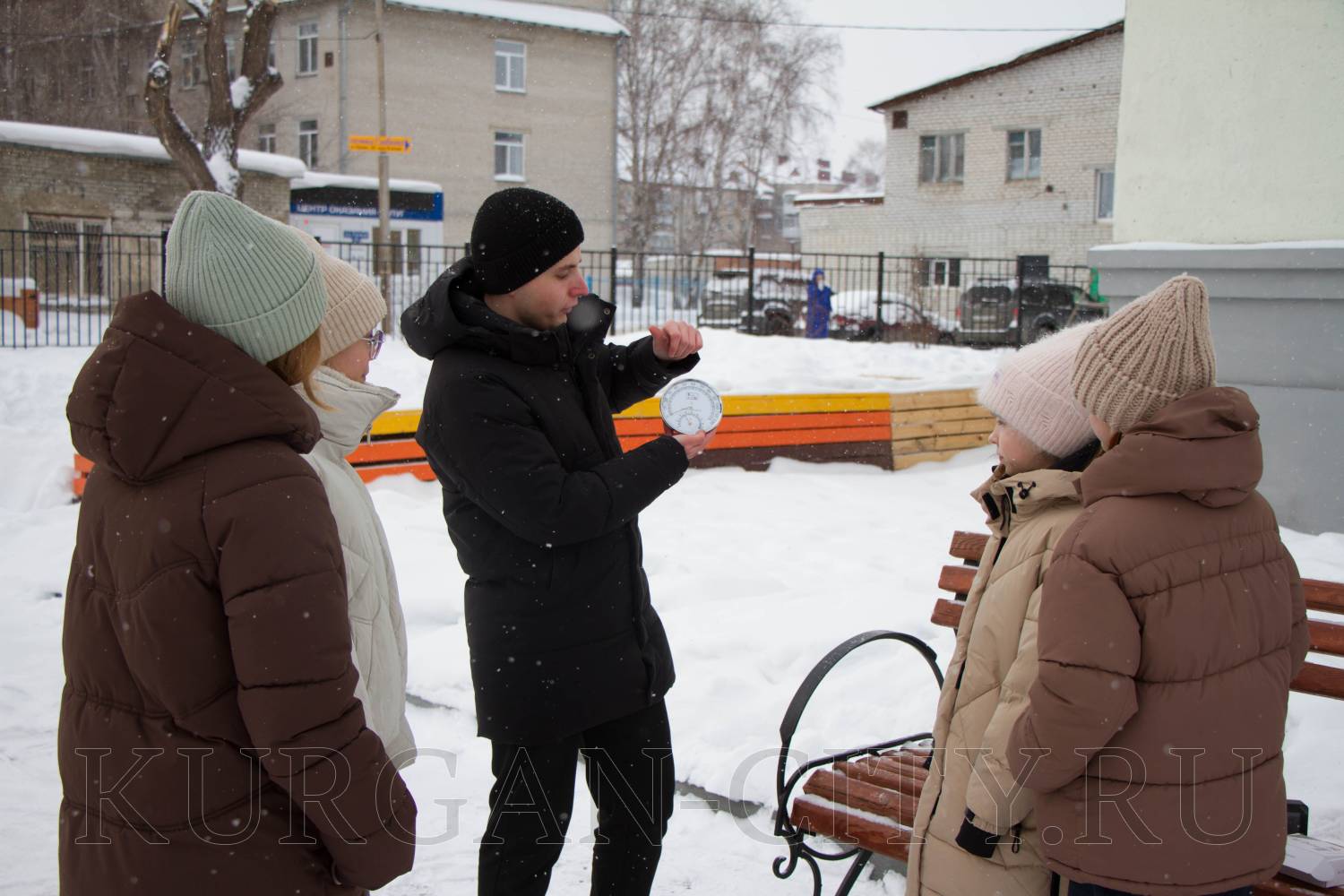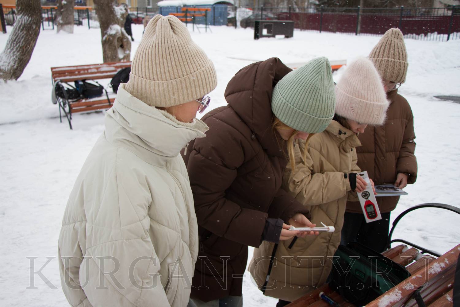 Зимой школьники работы на площадке используют переносное оборудование для измерения метеорологических показателей: барометр, анемометр, гигрометр и другие. Затем эти данные применяют для написания проектов.