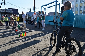 После приветственных речей пришла очередь конкурсов и весёлых развлечений, которые подготовили волонтёры Курганского Дома молодёжи. С большим азартом мальчишки и девчонки играли в мяч, импровизированный боулинг и зажигательно танцевали.