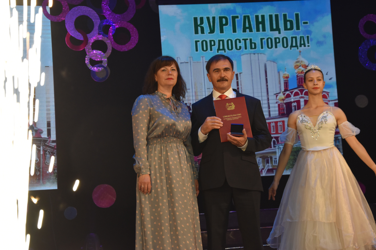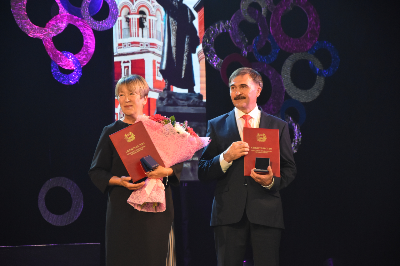 На торжественной церемонии Елена Ситникова объявила имена новых Почетных граждан города Кургана, которыми признаны Наркис Галиаскаров – председатель совета директоров ООО «Курганский индустриальный парк» и Галина Ребенок – директор МБОУ ДО «Дворец детского (юношеского) творчества». Глава города вручила каждому из них свидетельство, нагрудный знак и удостоверение.