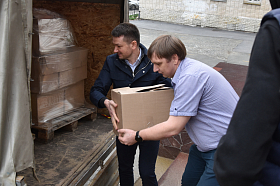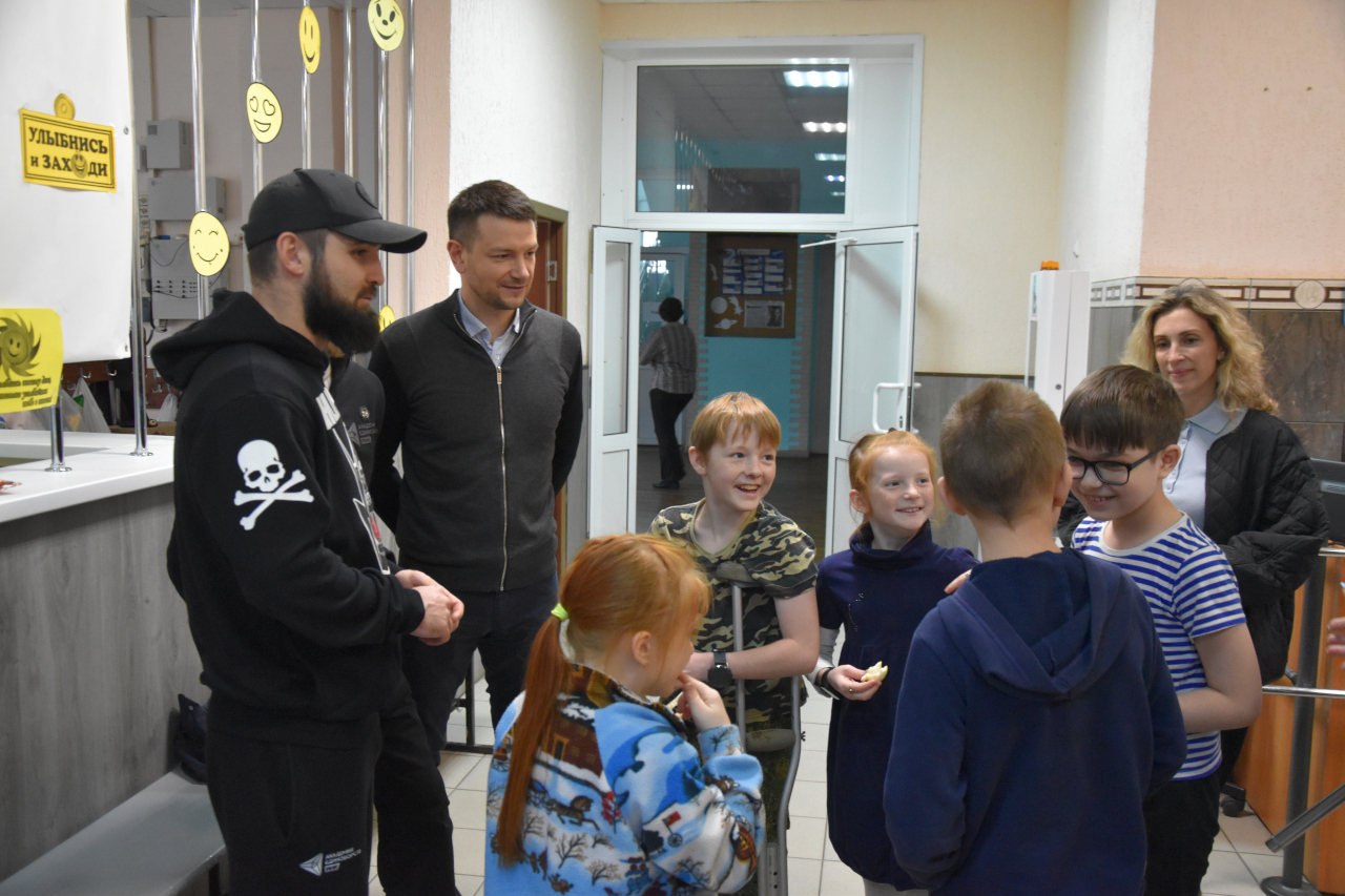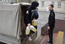 Затем они посетили расположенный в гимназии № 31 пункт временного размещения граждан и передали средства личной гигиены, бытовую химию.