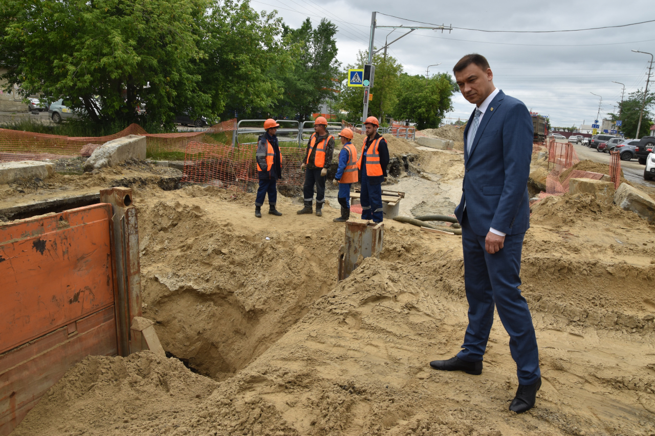 Одновременно с ремонтом путепроводов в городе ведутся работы по модернизации сетей. Следующий объект, который посетили депутаты, - улица Дзержинского. Там идет замена изношенного канализационного коллектора, который принимает около трети всех городских стоков, и водопроводных сетей. В настоящий момент работы проходят на трех участках.
