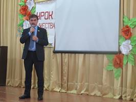 • Депутат Курганской городской Думы Наркис Юсупович Галиаскаров совместно с педагогами и учениками Гимназии №19 принял участие в уникальной акции — Единый урок мужества, посвященная 75-летию начала Великой Отечественной войны. В качестве приглашенных гостей были ветераны ВОВ. Ребята внимательно слушали рассказ о том, как встретили войну жители Курганской области, о первых ушедших на фронт добровольцах, примерах героизма, беззаветного служения Родине и образцового исполнения нашими земляками воинского долга. Выступая перед учениками, Наркис Галиаскаров сказал: «В настоящее время, когда многое в истории нашей Родины пересматривается и переоценивается, очень много значит для молодого поколения, его нравственного здоровья, воспитание в нем чувства гордости и уважения к своим дедам и прадедам, вынесшим на себе весь ужас войны. Воспитание в нем чувства патриотизма и любви к своей Родине, к родному краю, к, ветеранам войны».