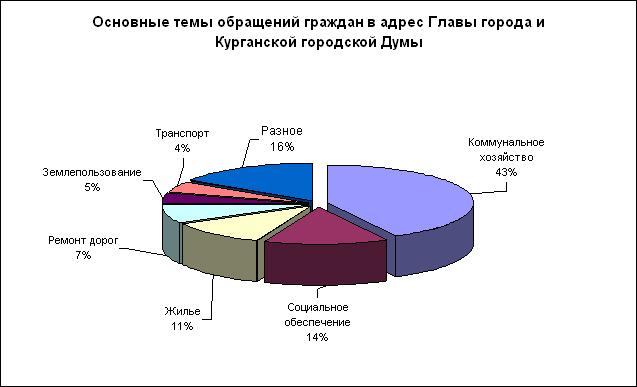 Основными темами обращений в адрес Главы города и Курганской городской Думы являлись (диаграмма 1):